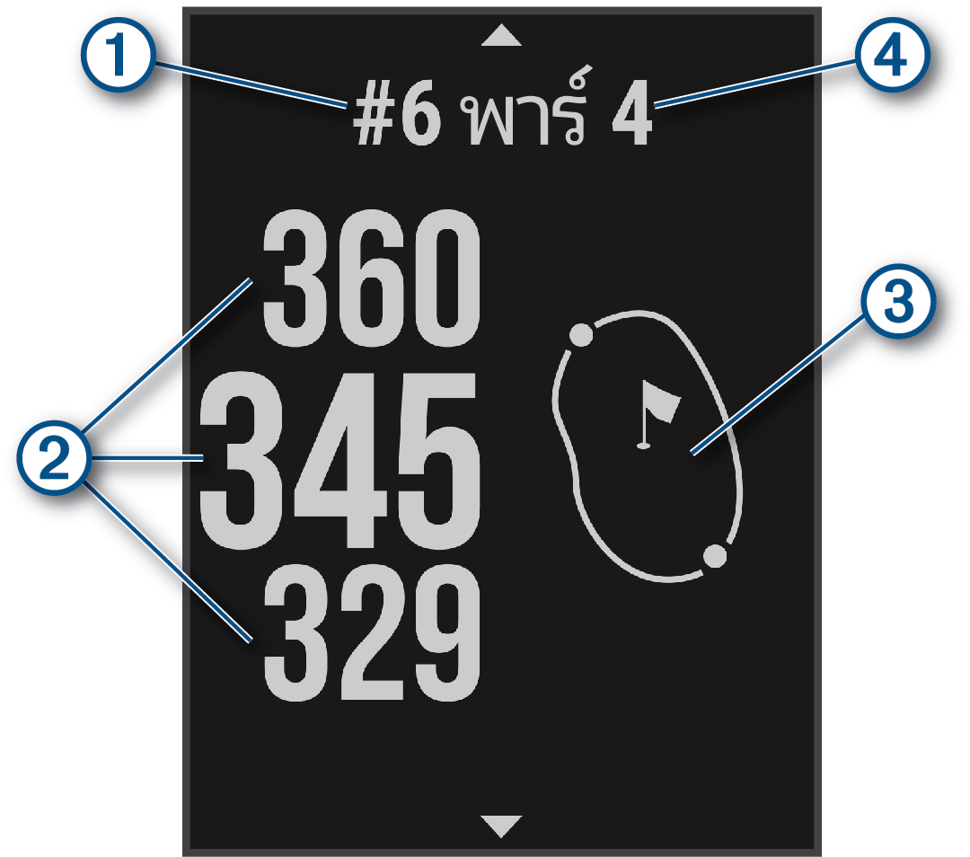 อุปกรณ์แสดงหลุมปัจจุบันที่คุณกำลังเล่นอยู่ และทำการเปลี่ยนโดยอัตโนมัติเมื่อคุณย้ายไปเล่นหลุมใหม่
