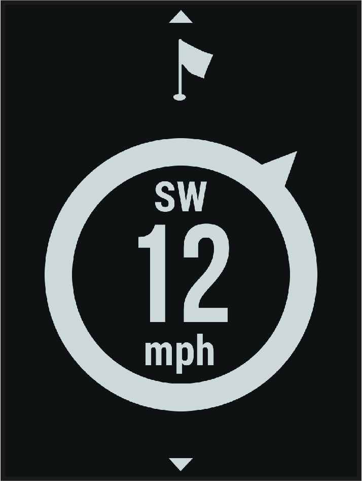 การดูความเร็วลมและทิศทางคุณสมบัติลมมีลูกศรที่แสดงความเร็วลมและทิศทางที่สัมพันธ์กับพิน คุณสมบัติลมจำเป็นต้องเชื่อมต่อกับแอป Garmin Golf ในขณะที่กำลังเล่นกอล์ฟ กด OK เลือก ลม ลูกศรชี้ไปยังทิศทางลมที่สัมพันธ์กับพินหน้าหลักการเล่นกอล์ฟการดูความเร็วลมและทิศทาง