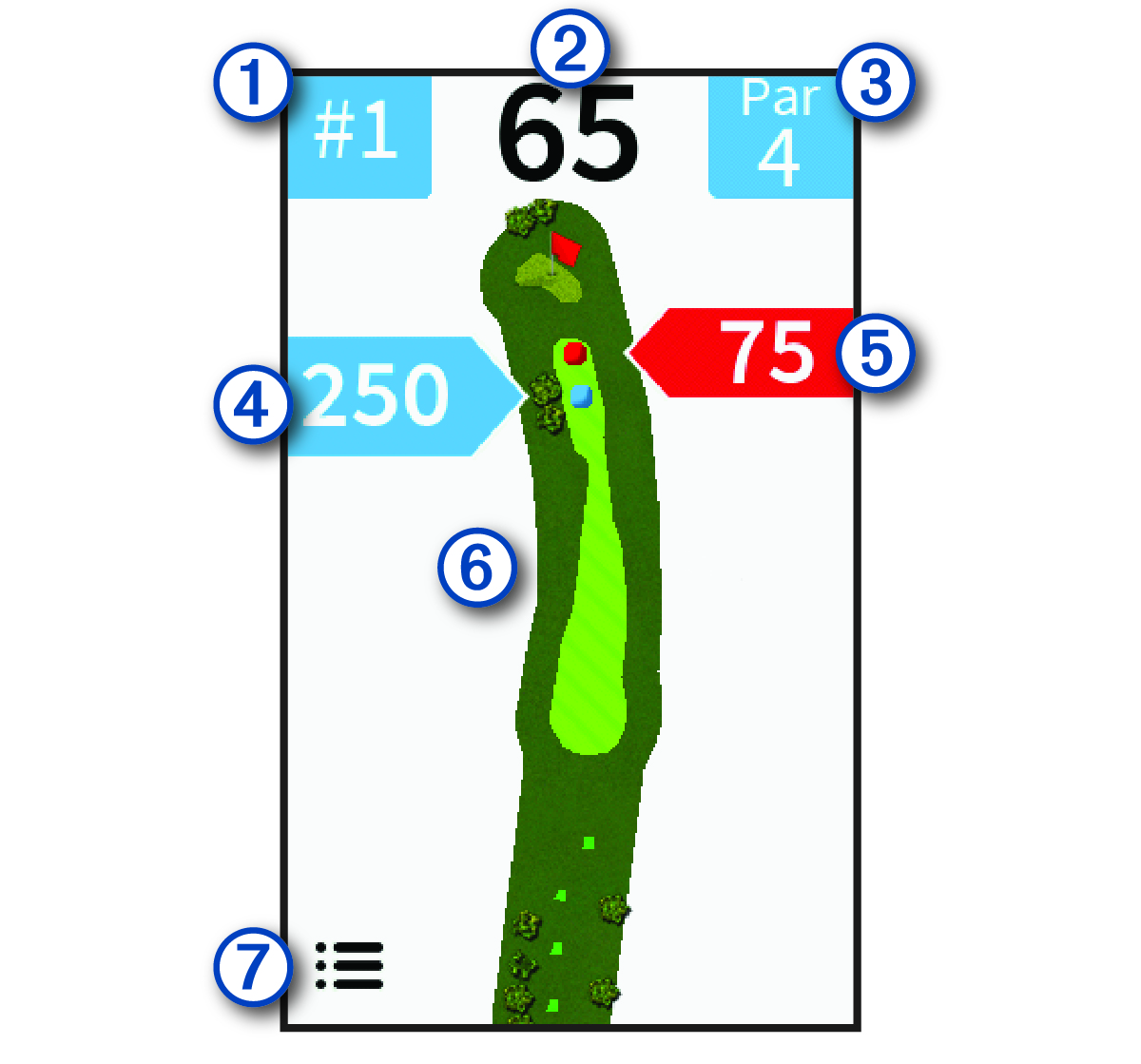 장치는 현재 사용자가 가상으로 플레이하고 있는 홀을 보여줍니다.