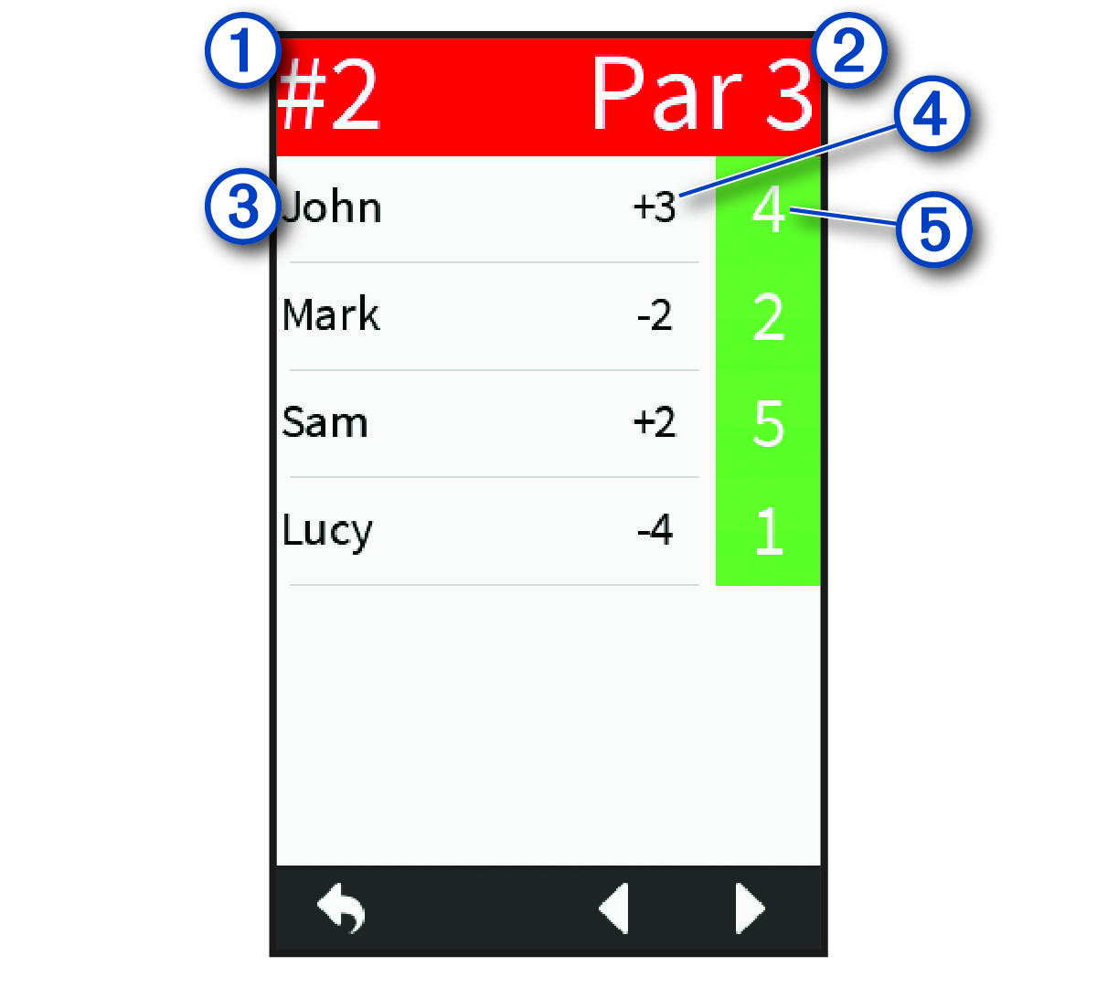 라운드 도중에 스코어카드를 사용하여 플레이어의 이름 과 스코어를 확인하거나 변경할 수 있습니다.