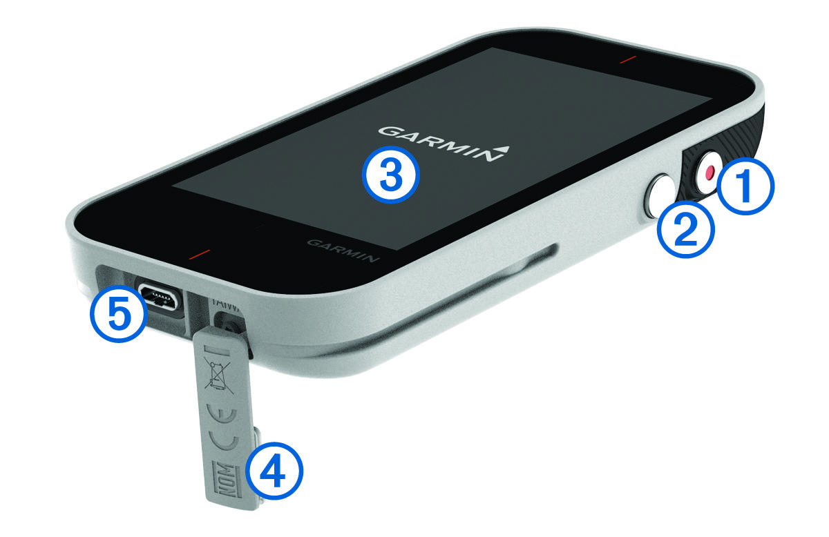 장치를 켜려면 누릅니다. 라운드 도중에 화면을 잠그거나 잠금 해제하려면 누릅니다. 장치를 끄려면 길게 누릅니다. |