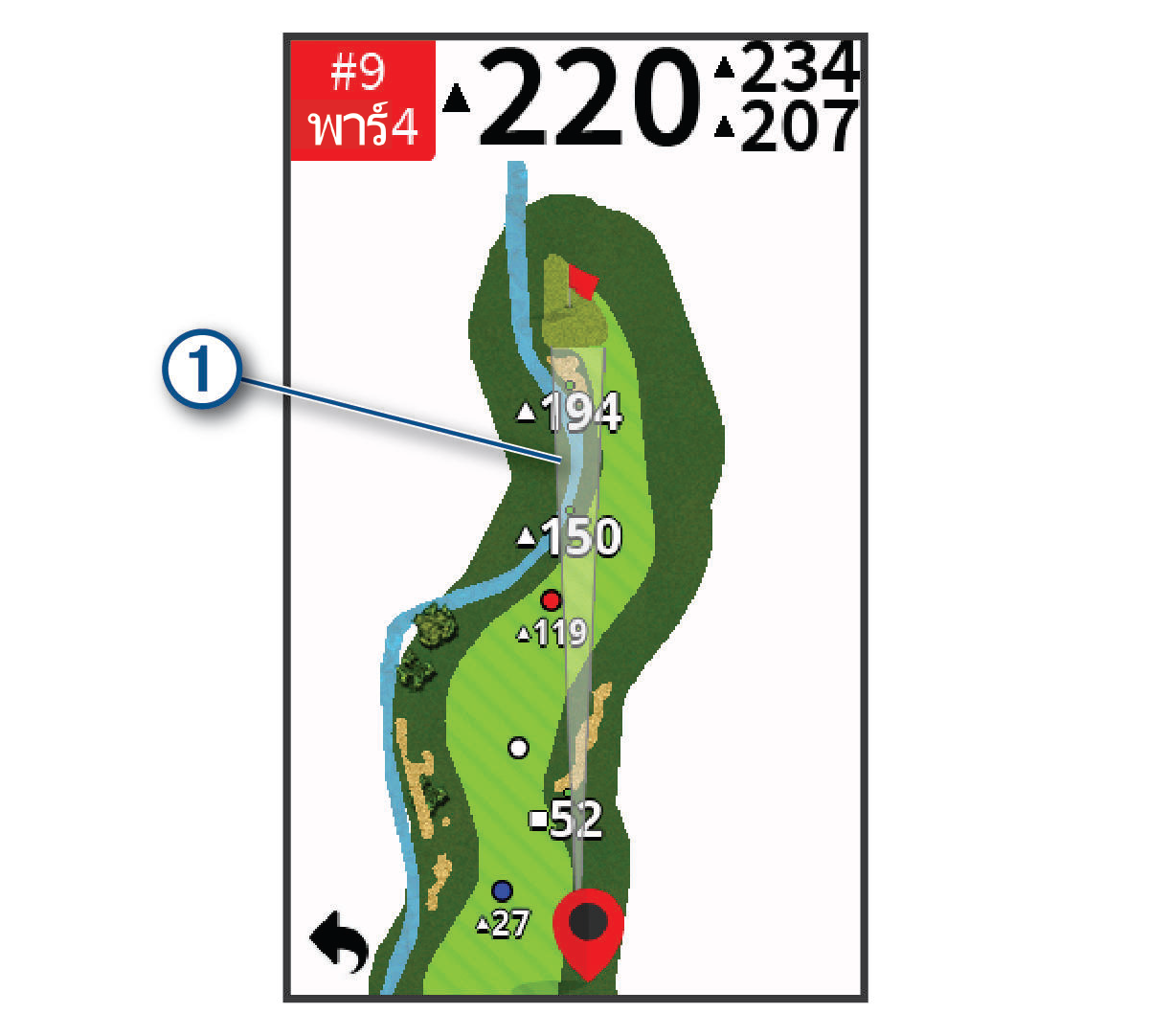 หมายเหตุ: อย่าใช้คุณสมบัติ PinPointer ขณะอยู่ในรถกอล์ฟ การรบกวนจากรถกอล์ฟสามารถส่งผลต่อความแม่นยำของเข็มทิศได้
