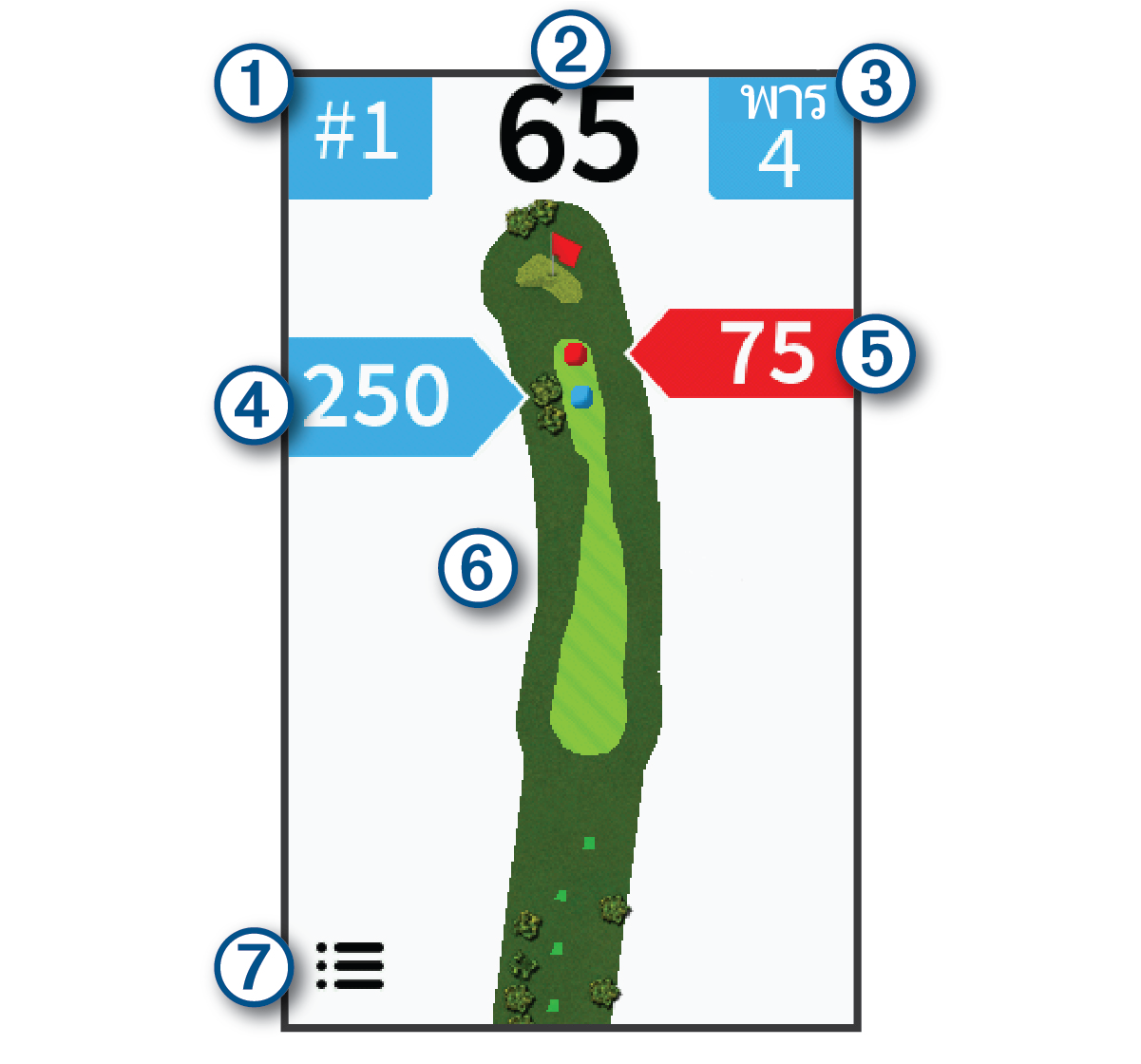 แสดงระยะทางไปยังตรงกลางของกรีน |