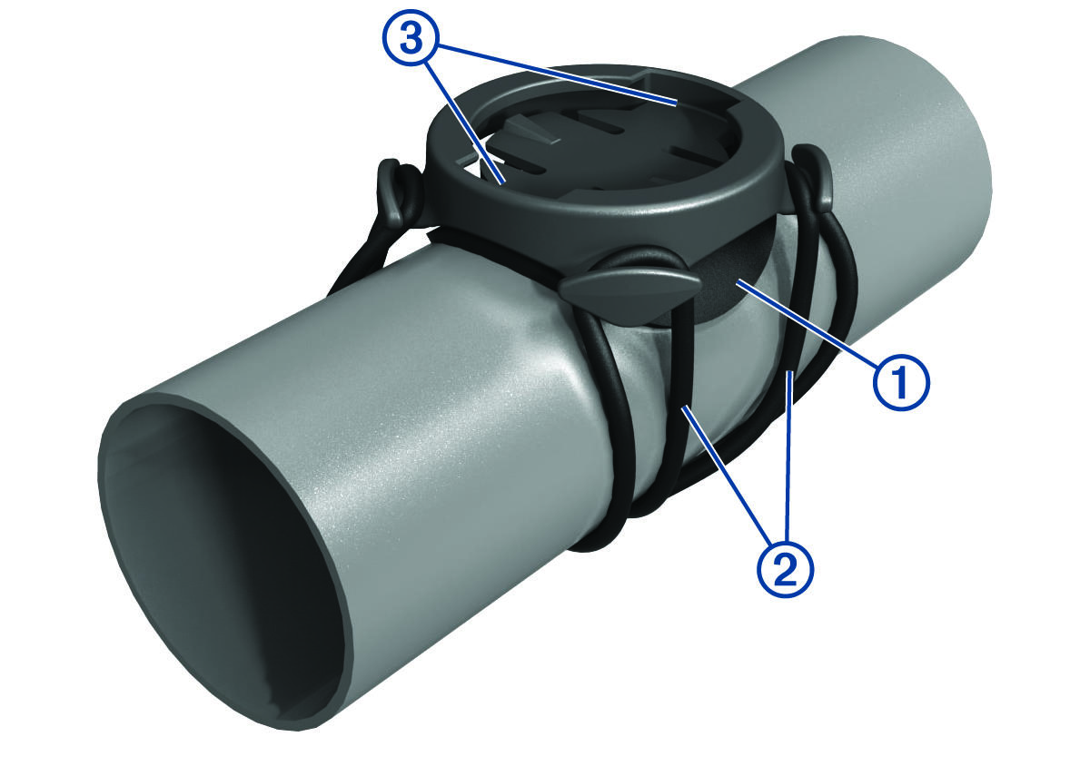 Để thu nhận GPS tốt nhất, định vị đế gắn để phía trước thiết bị hướng lên trời. Bạn có thể lắp đặt đế gắn vào bất kỳ thanh nào có chiều dài khoảng 19mm đến 38mm (0,75 in. đến 1,5 in.).