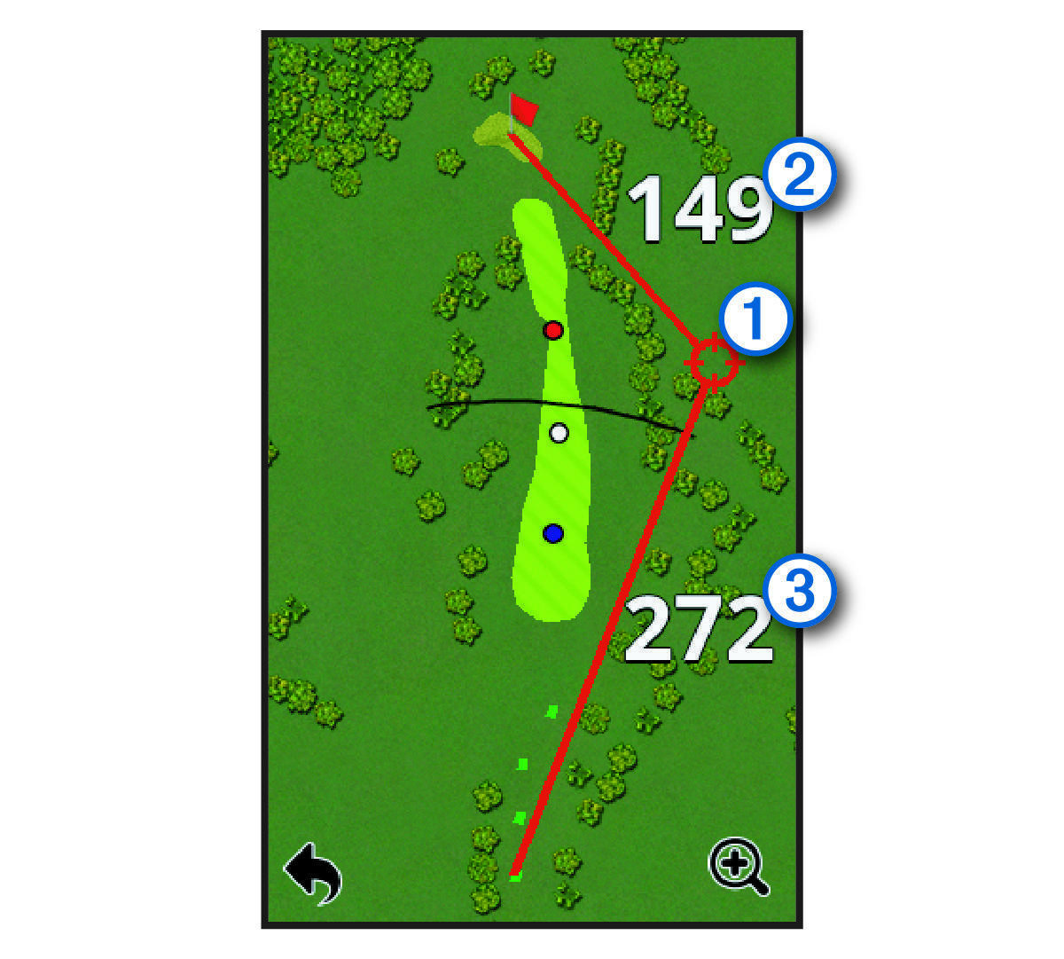 Trong khi xem trước sân hoặc chơi một vòng, bạn có thể sử dụng tính năng chạm mục tiêu để đo khoảng cách đến bất kỳ điểm nào trên bản đồ.