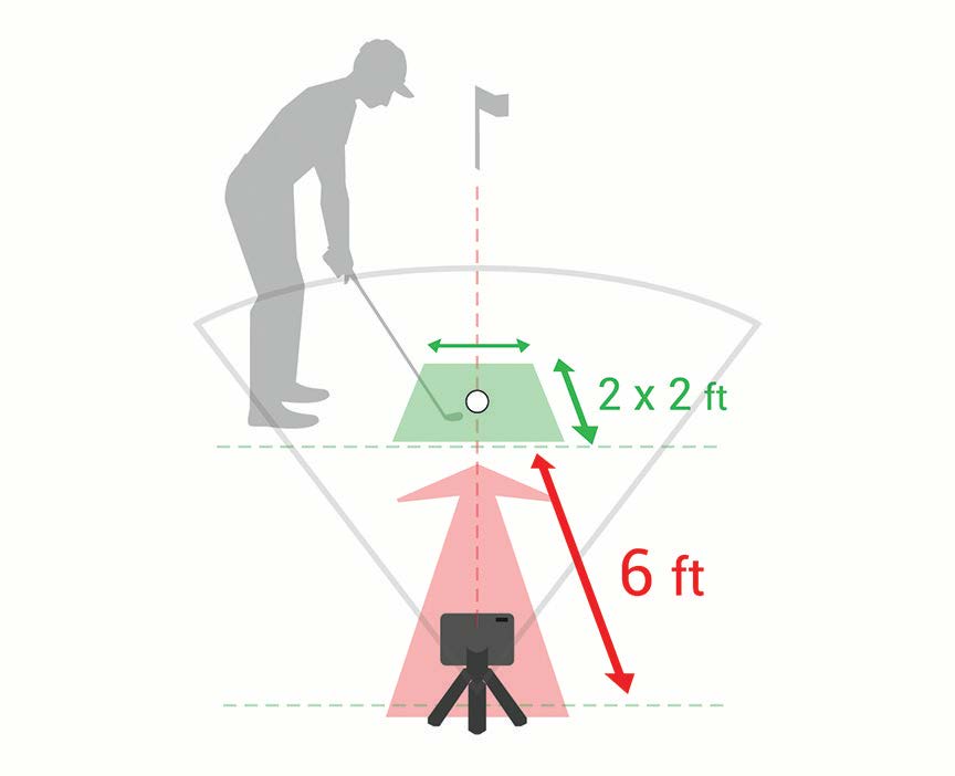 - 若有需要,您可将发球区往目标线向左或右移动 0.3 米(1 英尺)以内,并保持在设备前方 1.8 米(6 英尺)起算的一块 0.6 x0.6 米(2x2 英尺)的挥杆区域内。