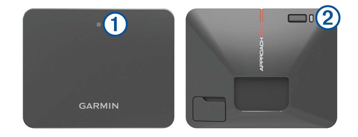 ① LED 状态指示灯显示设备状态,② LED 电源指示灯显示电量状态。
