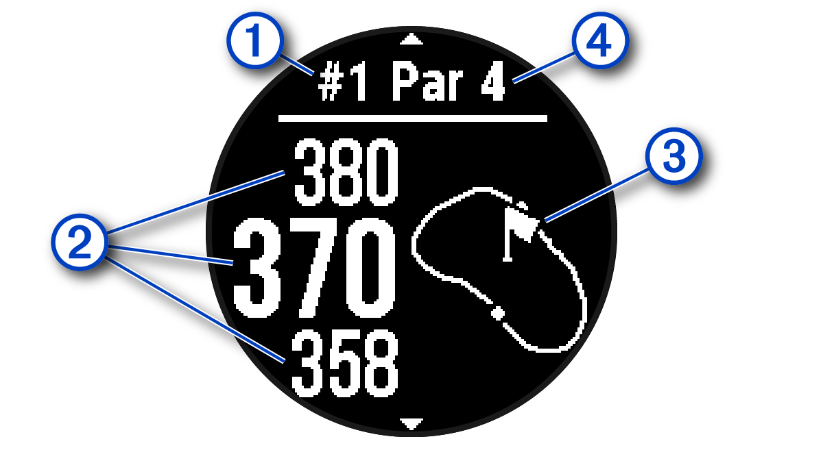 NOTE: Because pin locations change, the device calculates the distance to the front, middle, and back of the green, but not the actual pin location.