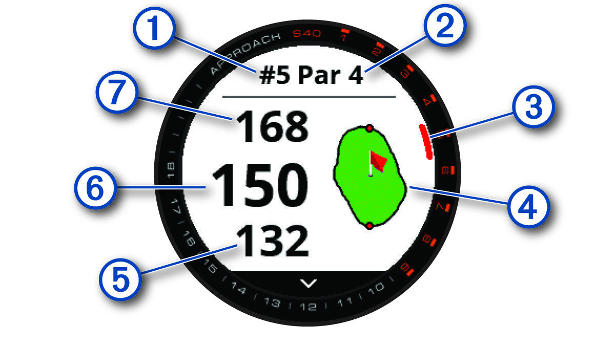 Thiết bị cho biết lỗ golf hiện tại mà bạn đang chơi, và tự động chuyển tiếp khi bạn chuyển đến lỗ mới.