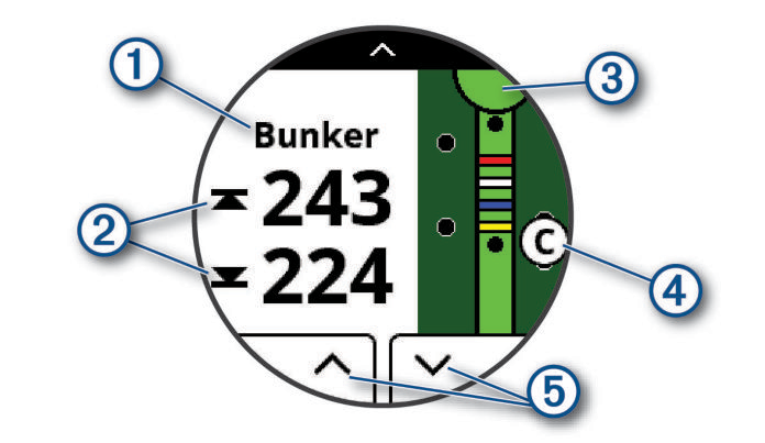 : Arrows you can tap to view other hazards, layups, or doglegs for the hole.