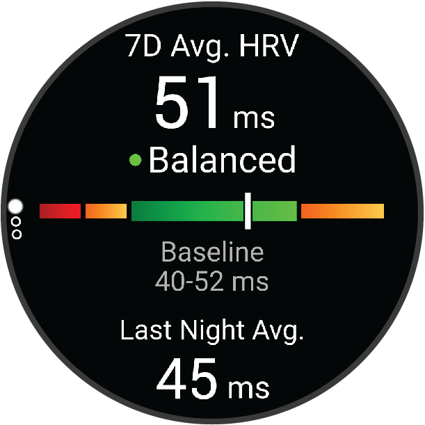 You can sync your watch with your Garmin Connect account to view your current heart rate variability status, trends, and educational feedback.