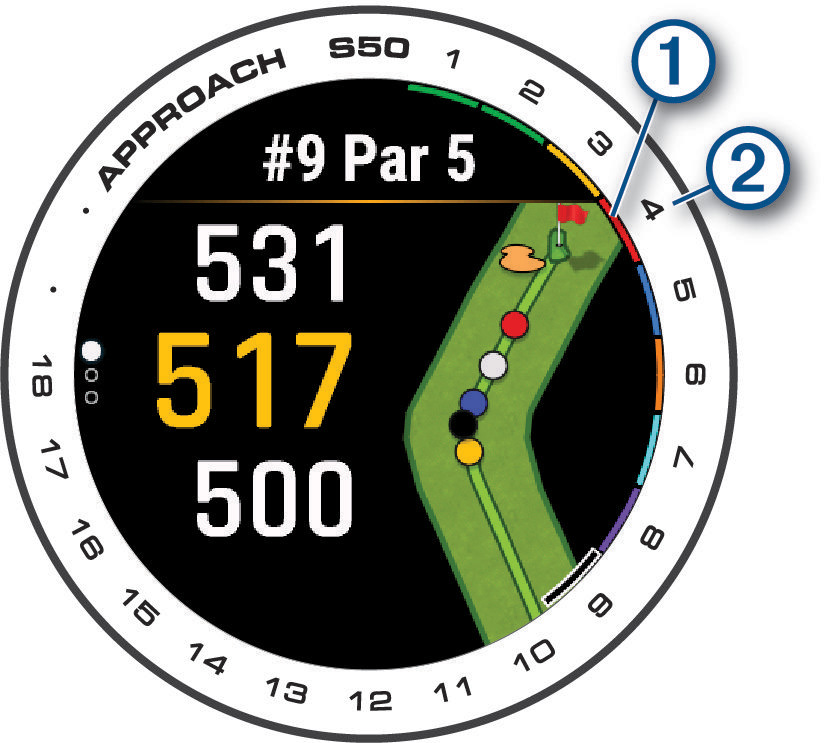 di sepanjang bezel sebagai indikasi skor Anda pada hole tersebut.