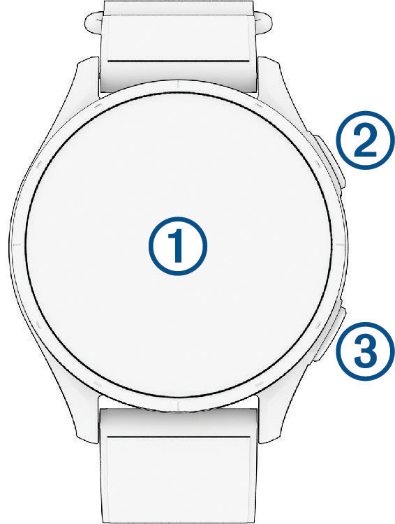 押す:ラウンド開始、アクティビティ/アプリを開始 長押し:電源オン、コントロールメニューとデバイス設定を開く( コントロールメニュー) |