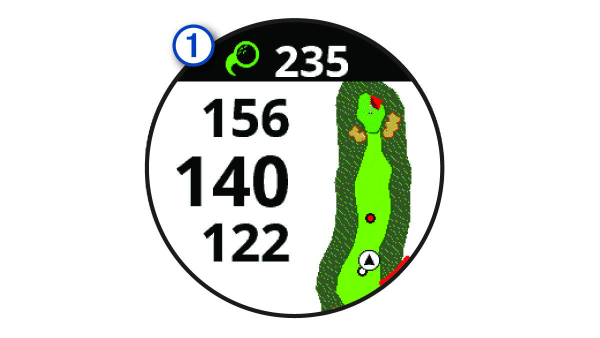 Khi thiết bị phát hiện cú đánh, khoảng cách của bạn từ vị trí đánh bóng hiển thị trên dải băng