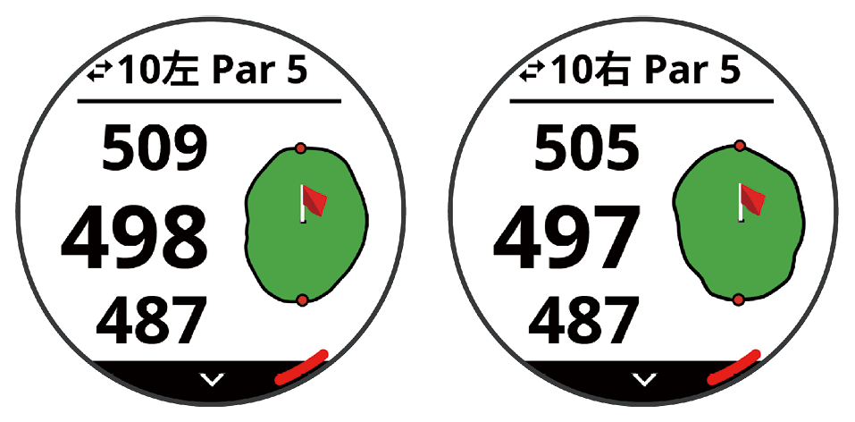 雙果嶺切換在某些特定的高爾夫球場球道,會有共用發球台的雙果嶺及球洞設計,兩個果嶺通常相距不遠,為了進行區隔會通稱為「左」及「右」果嶺,以利選手辨別。若球道帶出的球洞觀測資訊非您想要進行的球洞內容,可於 S62 上點選 進行切換。點選螢幕頂端左上方的雙箭頭切換左右兩側果嶺的球洞觀測資訊。首頁一起打高爾夫球雙果嶺切換