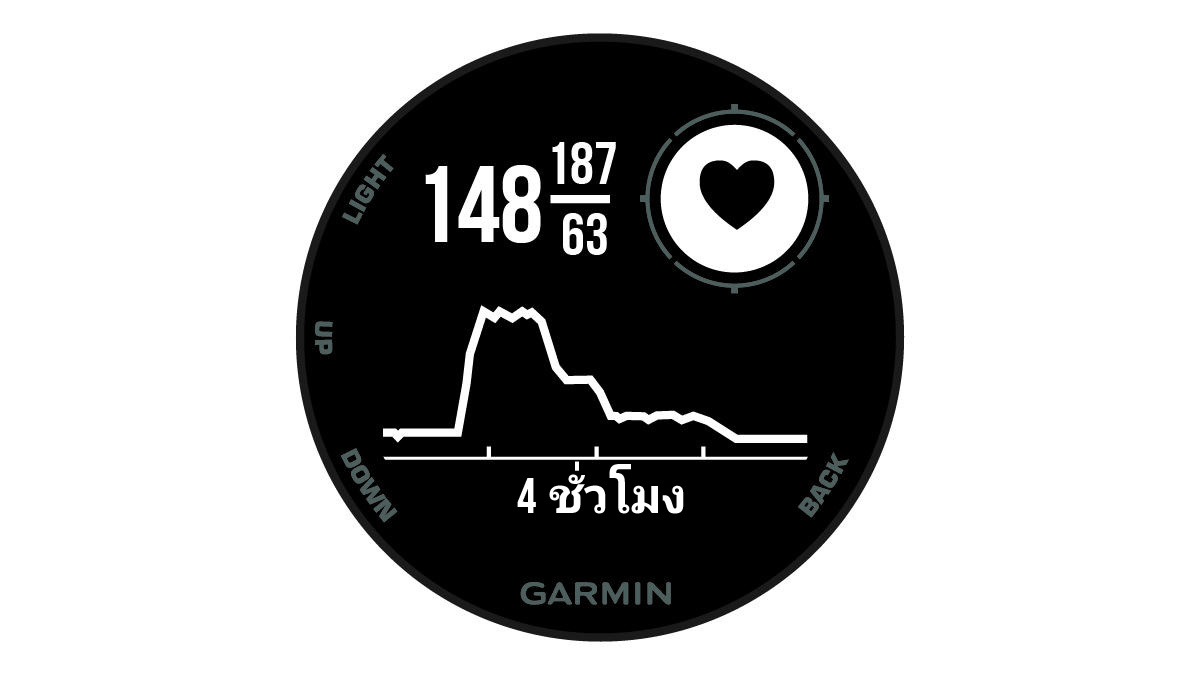 1. จากหน้าปัดนาฬิกา เลือก UP หรือ DOWN เพื่อดูวิจิทอัตราการเต้นของหัวใจ
