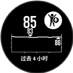 查看身体电量小工具身体电量小工具显示你当前的身体电量和过去几个小时的身体电量水平图表。 按 UP 或 DOWN 键查看身体电量小工具。注意:您可能需要将小工具添加到工具列表(自定义 Widget 小工具排序,第18页)。 按 GPS 键以查看身体电量和压力水平的组合图表。 按 DOWN 键可查看午夜以来的身体电量数据。 主页心率功能身体电量查看身体电量小工具