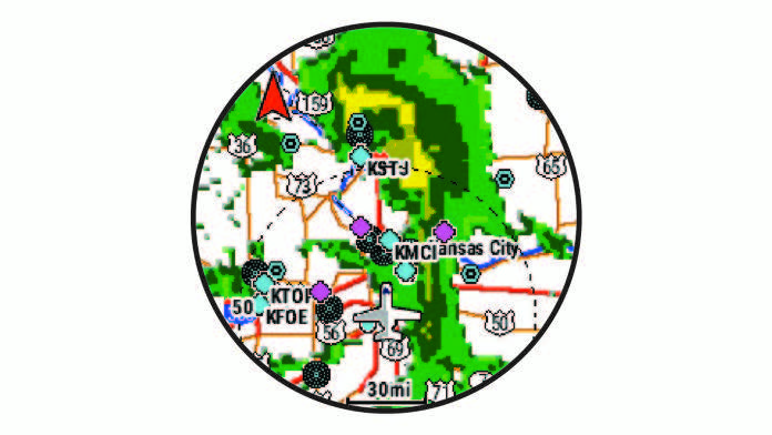 cùng lúc. Thiết bị tải xuống một hình vuông dữ liệu radar cho vị trí GPS hiện tại của bạn, được phác họa bằng màu đỏ tươi. Dữ liệu radar hoạt động trong vòng 5 phút.