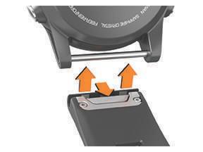 1. Trượt chốt khóa trên dây đeo QuickFit, và tháo bỏ dây đeo ra khỏi đồng hồ.