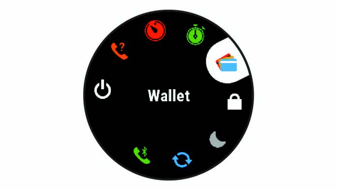 Trình đơn điều khiển có các tùy chọn trình đơn, như bật chế độ không làm phiền, khóa phím và tắt thiết bị. Bạn cũng có thể mở ví điện tử Garmin Pay.