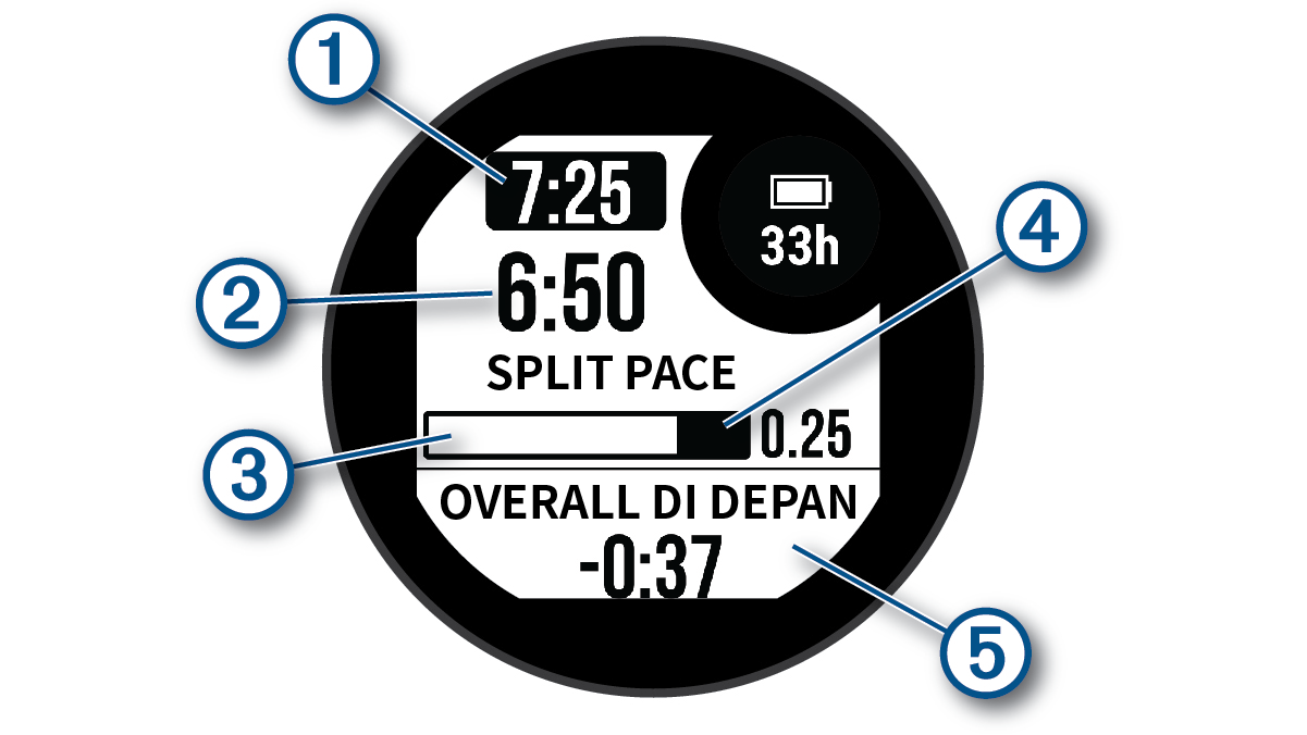 Waktu keseluruhan di depan atau di belakang target waktu Anda |