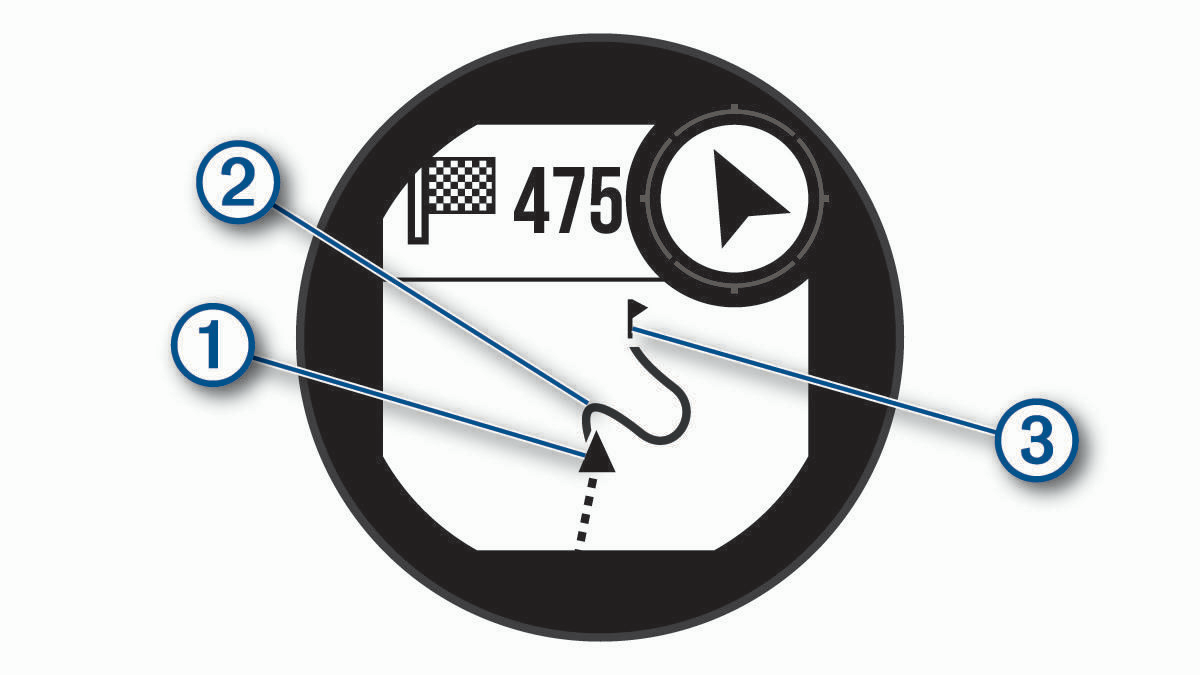 คุณสามารถนำทางกลับไปยังจุดเริ่มต้นของกิจกรรมปัจจุบันของคุณแบบเป็นเส้นตรงหรือตามเส้นทางที่คุณได้เดินทางผ่านมาแล้วได้ คุณสมบัตินี้มีให้ใช้งานเฉพาะกิจกรรมที่ใช้ GPS เท่านั้น