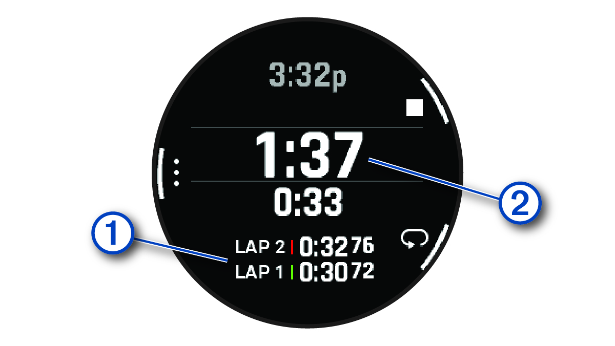 - Tekan BACK untuk memulai ulang timer lap