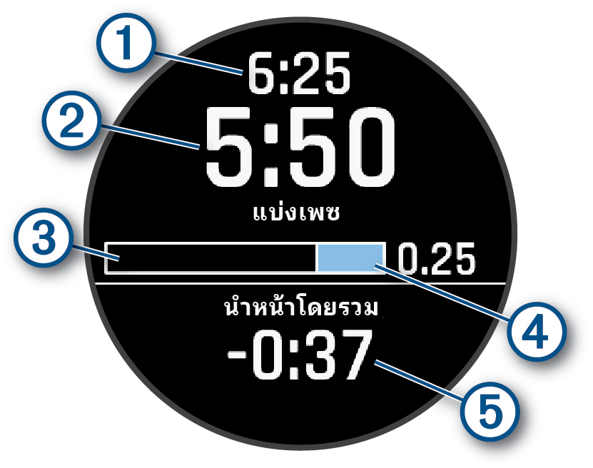 เวลาโดยรวมก่อนหรือหลังเวลาเป้าหมายของคุณ |