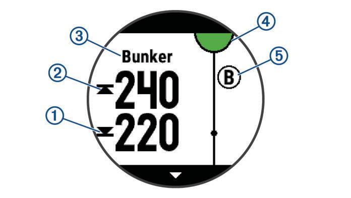 Bạn có thể xem khoảng cách đến các mối nguy hiểm dọc theo đường lăn bóng của các lỗ Par 4 và 5. Các mối nguy hiểm mà ảnh hưởng đến lựa chọn cú đánh được hiển thị riêng lẻ hoặc theo nhóm để giúp bạn xác định khoảng cách cú phát bóng hoặc khoảng cách bóng tiếp đất