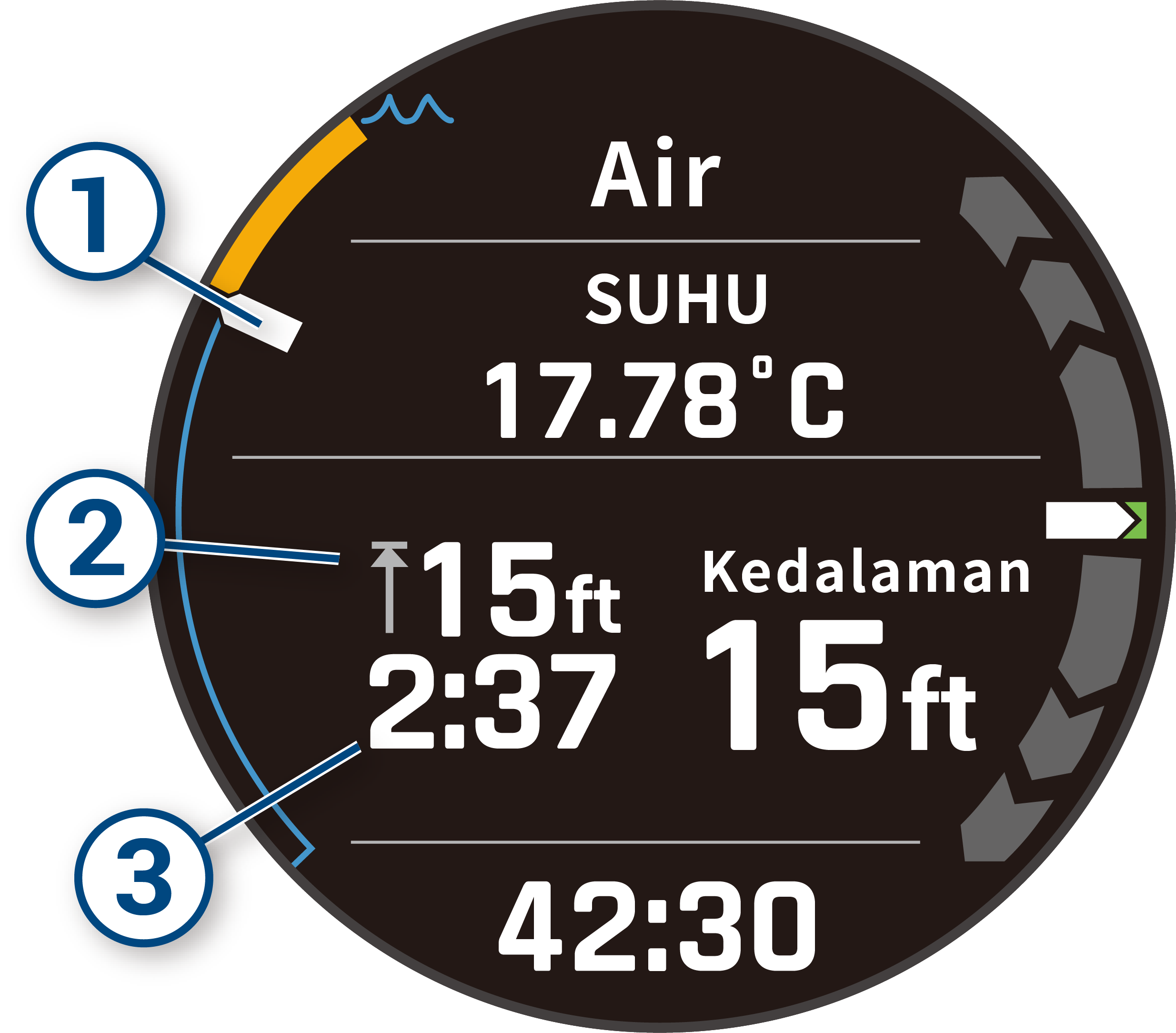 Saat Anda berada dalam 1 m dari batas atas kedalaman, timer mulai menghitung mundur.