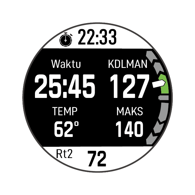 TIPS: Anda dapat menambahkan layar stopwatch sederhana ke mode selam gas mana pun ().