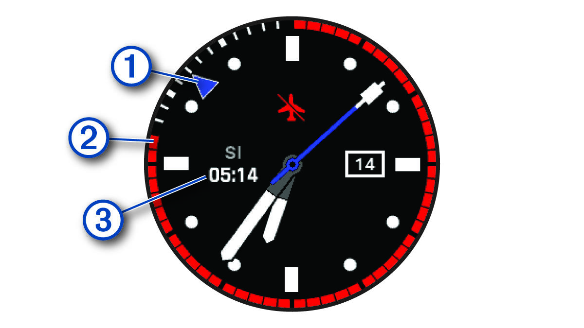 남은 비행 금지 시간. 시계에 24 시간 표시 방식으로 표시합니다 (9 페이지, 비행 금지 시간) |