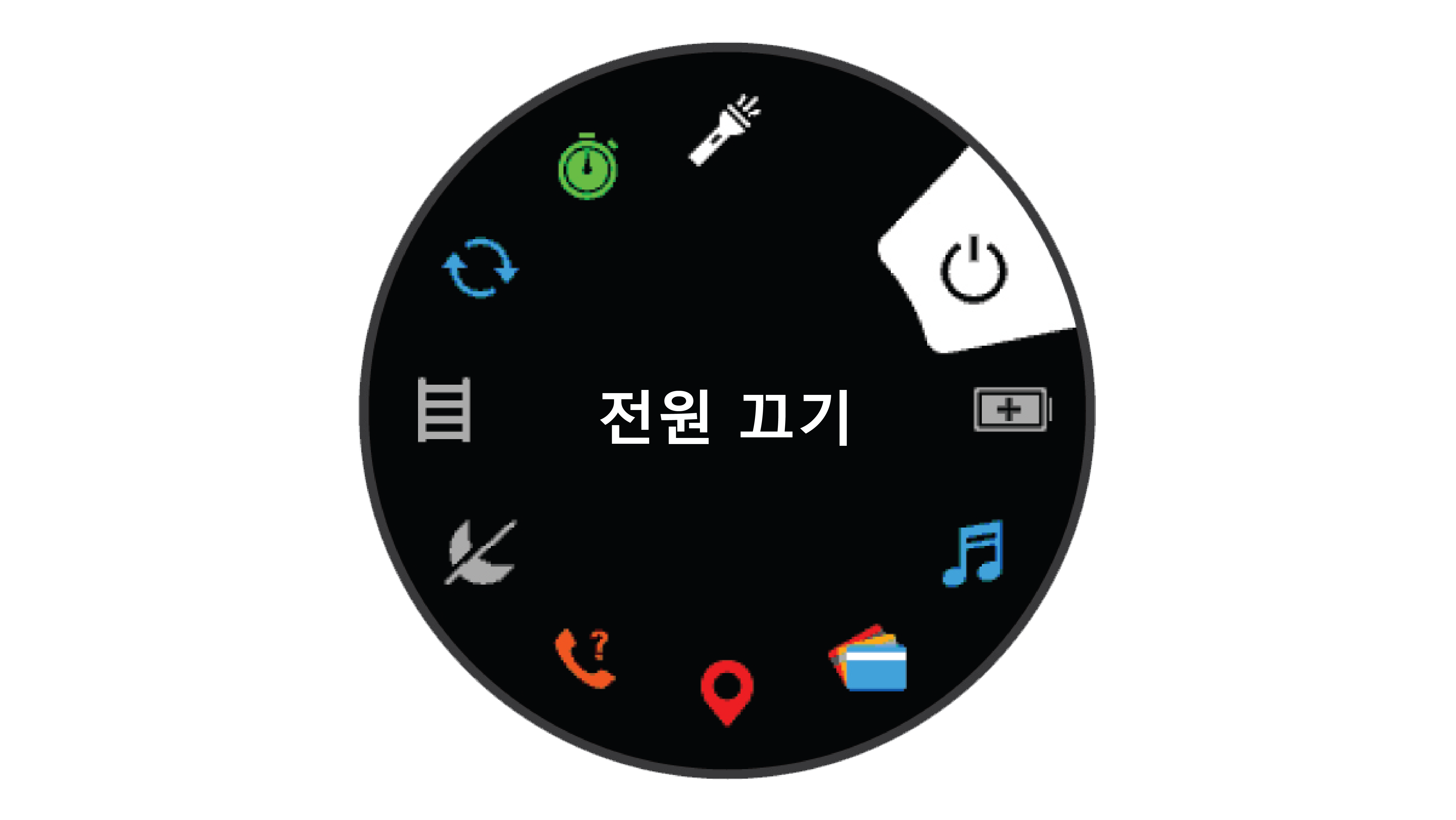 컨트롤 메뉴는 방해 금지 모드 켜기, 위치 저장하기, 장치 끄기와 같이 자주 사용되는 기능에 대한 단축키 옵션을 제공합니다.