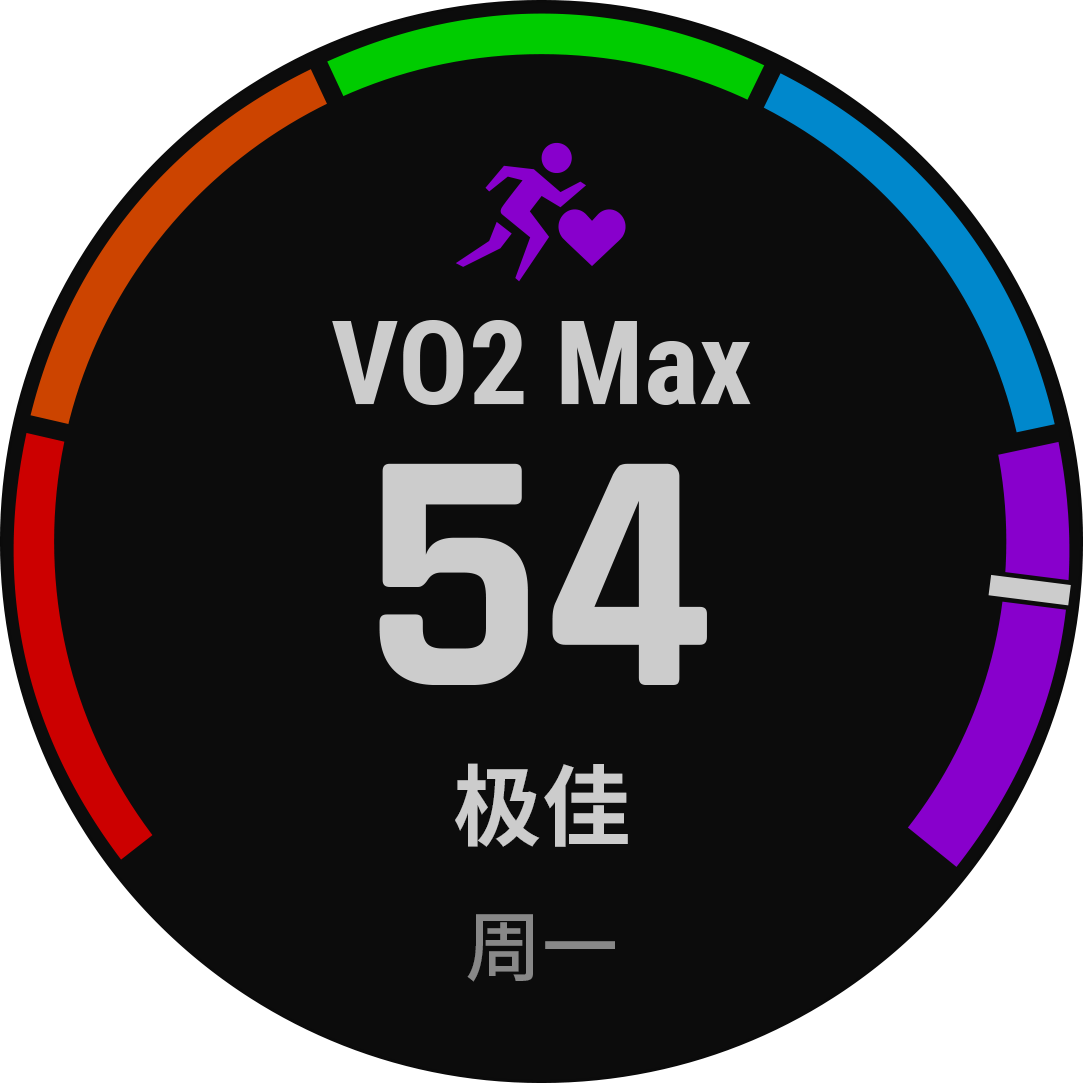 最大摄氧量是您在表现最好时,每分钟每公斤体重的最大耗氧量(以毫升为单位)。简单来说,最大摄氧量是运动成效的指标,而且它应该会随着您的体能进步而提升。Descent设备需要腕式心率或者兼容的心率带获取最大摄氧量。Descent设备已将跑步和骑行的最大摄氧量估算数值分开,不论您戴着表在室外跑步或是将 Garmin 设备与兼容的功率计配对,以中强度的状态进行几分钟后,即可得到正确的最大摄氧量。