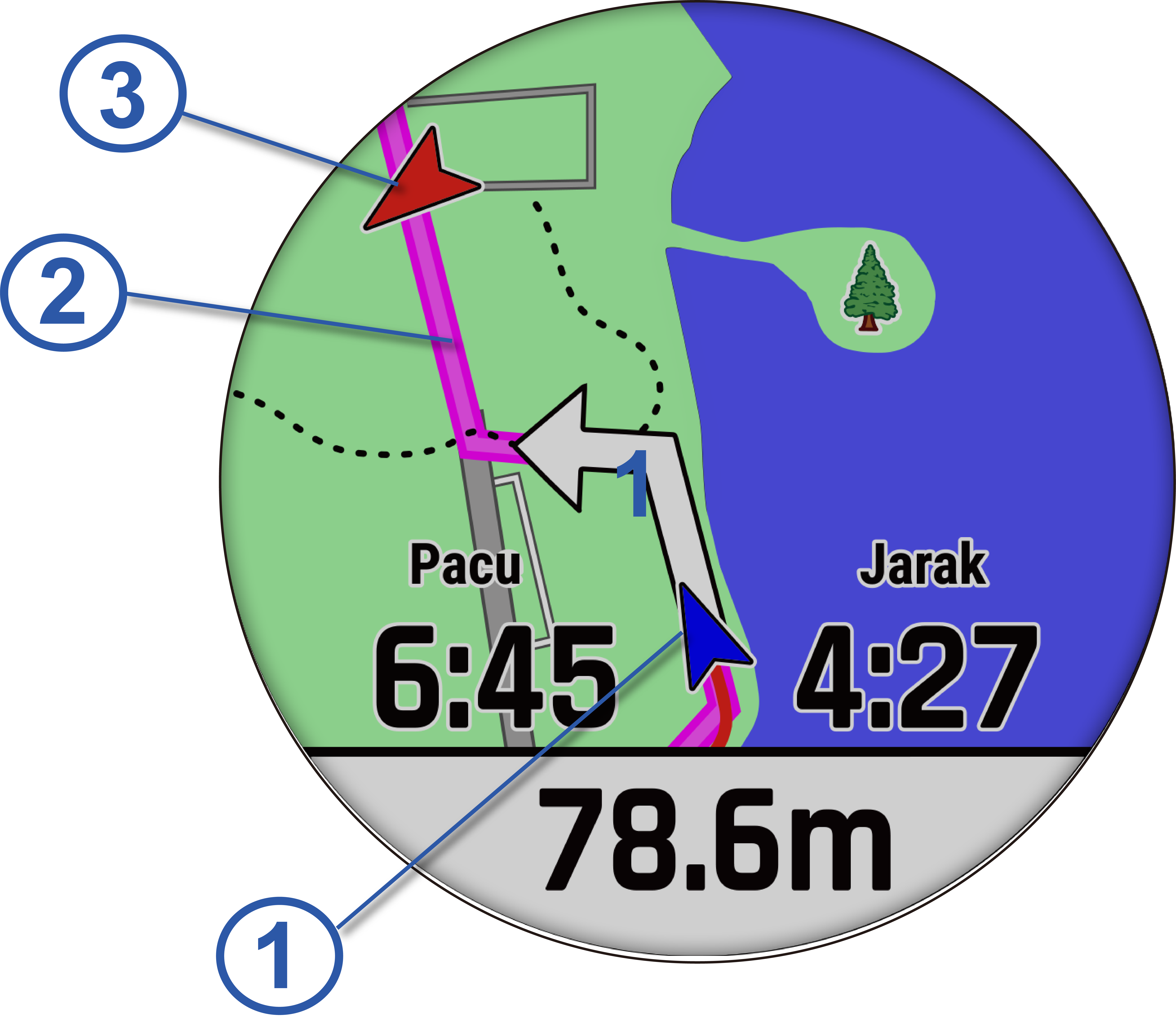 Anda dapat menavigasi kembali ke titik awal dari track atau aktivitas sepanjang jalan Anda bepergian. Fitur ini hanya tersedia untuk kegiatan yang menggunakan GPS.