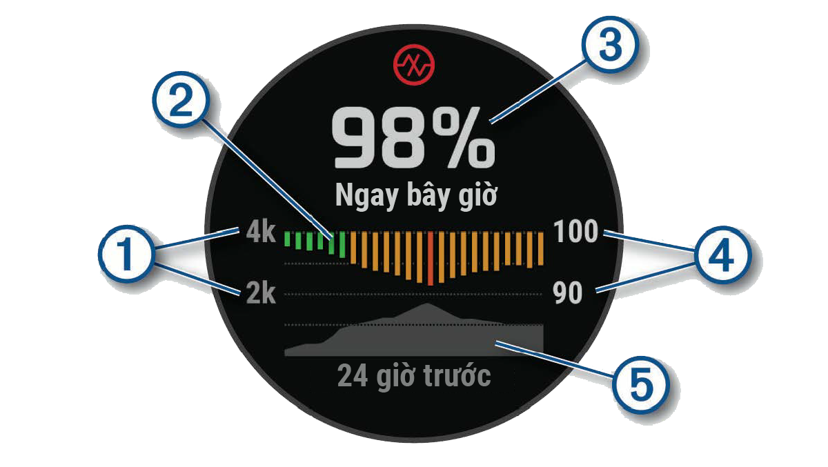 Để biết thêm thông tin chi tiết về độ chính xác của dữ liệu nồng độ oxy trong máu, truy cập Garmin.com.vn/legal/atdisclaimer.