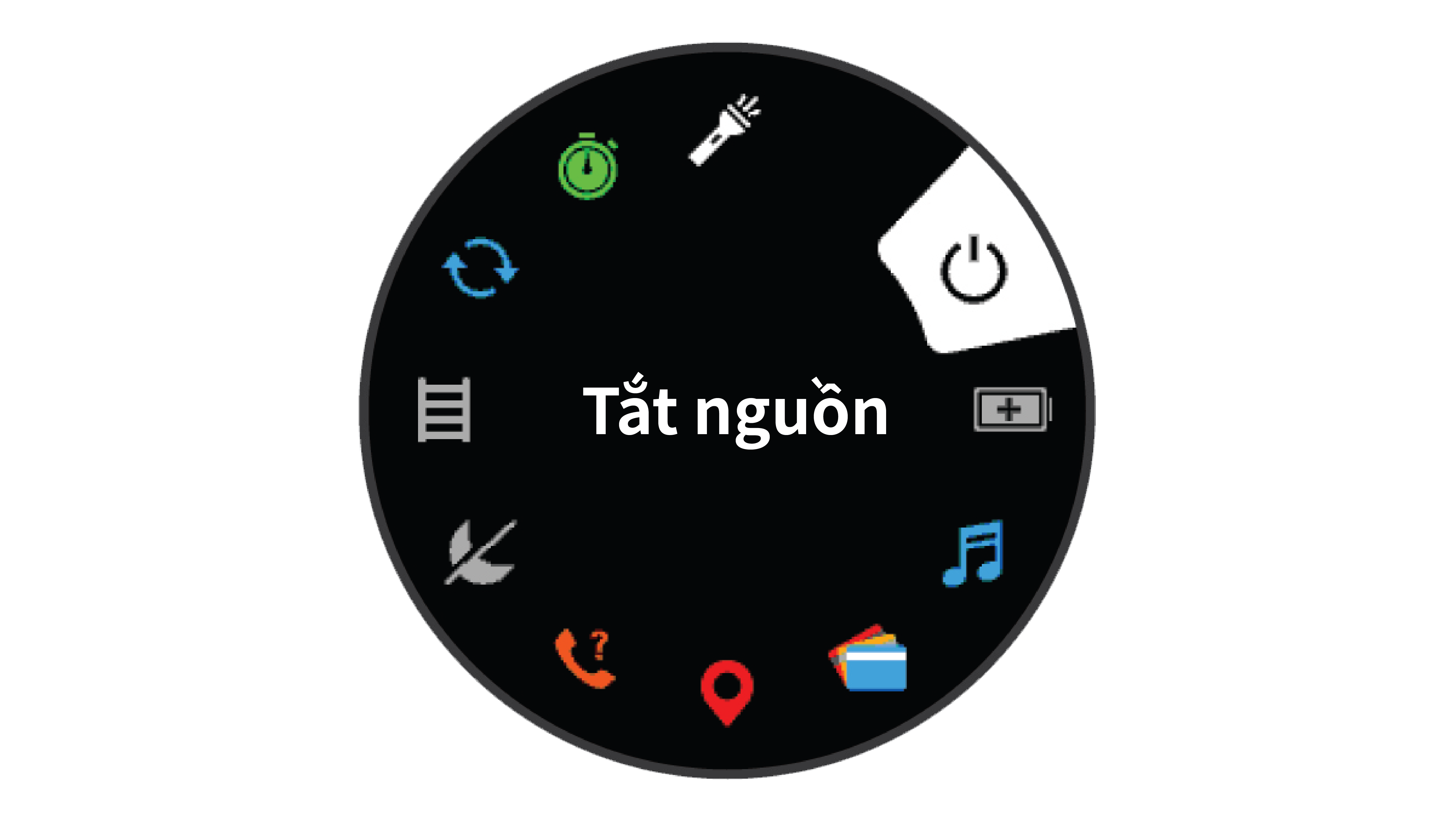 Trình đơn điều khiển bao gồm các tùy chọn trình đơn, như bật chế độ không làm phiền, xác định phương hướng và tắt thiết bị. Bạn cũng có thể mở ví điện tử Garmin Pay.