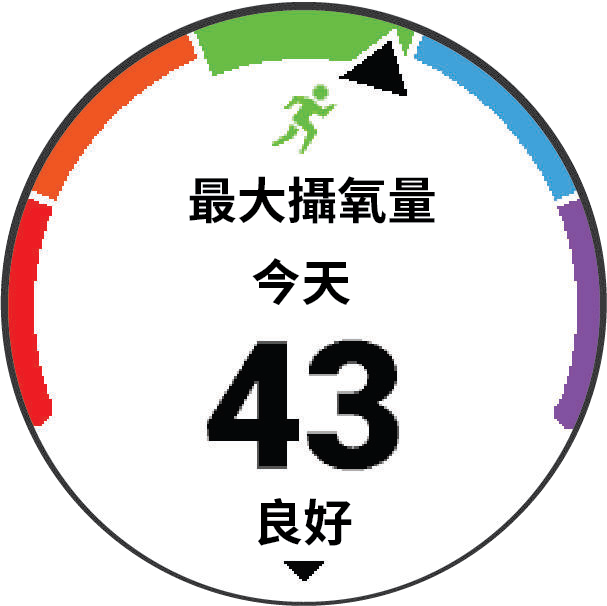 最大攝氧量是您在表現最好時,每分鐘每公斤體重的最大耗氧量(以毫升為單位)。簡單來說,最大攝氧量是運動成效的指標,而且它應該會隨著您的體能進步而提升。裝置已將跑步和騎乘的最大攝氧量估算數值分開,不論您戴著錶在室外跑步或是將 Garmin 裝置與相容的功率計配對,以中強度的狀態進行幾分鐘後,即可得到正確的最大攝氧量。