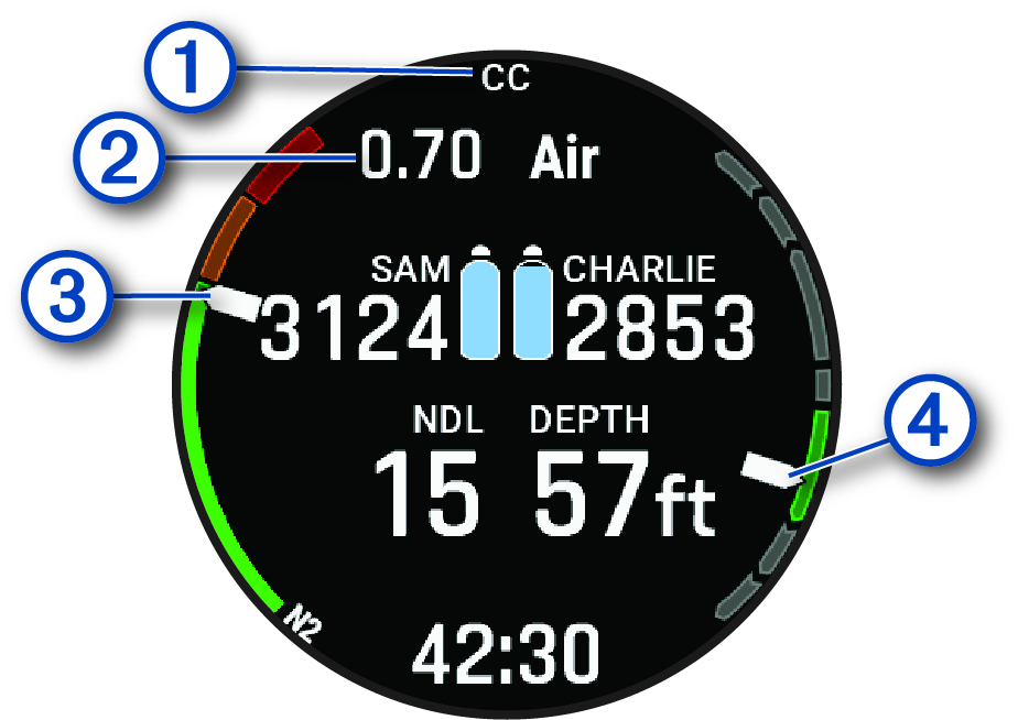 Indicates whether closed-circuit (CC) or open-circuit (OC) diving is active. |