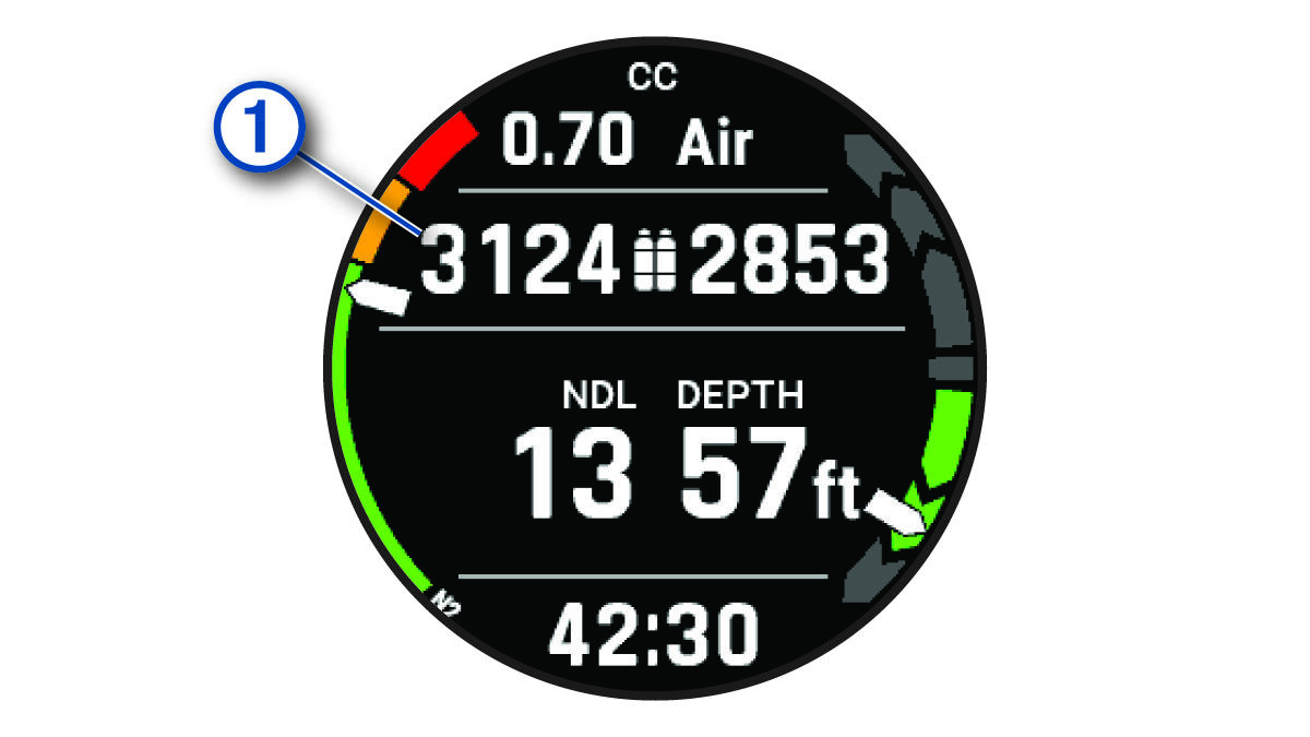 The activity timer starts automatically when you reach a depth of 1.2 m (4 ft.).