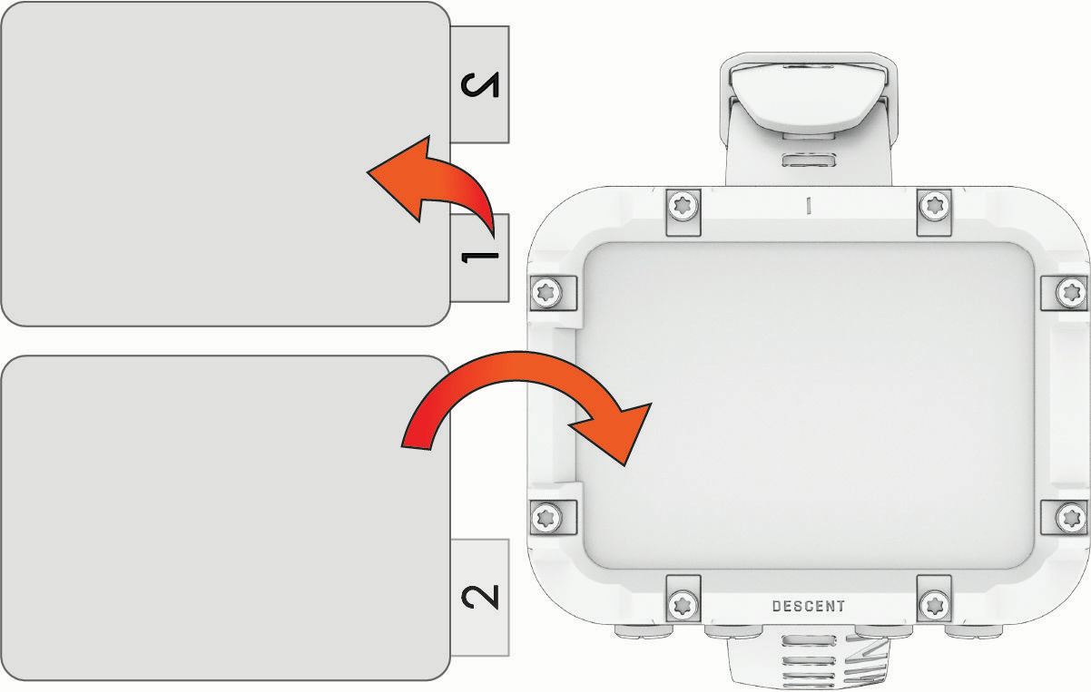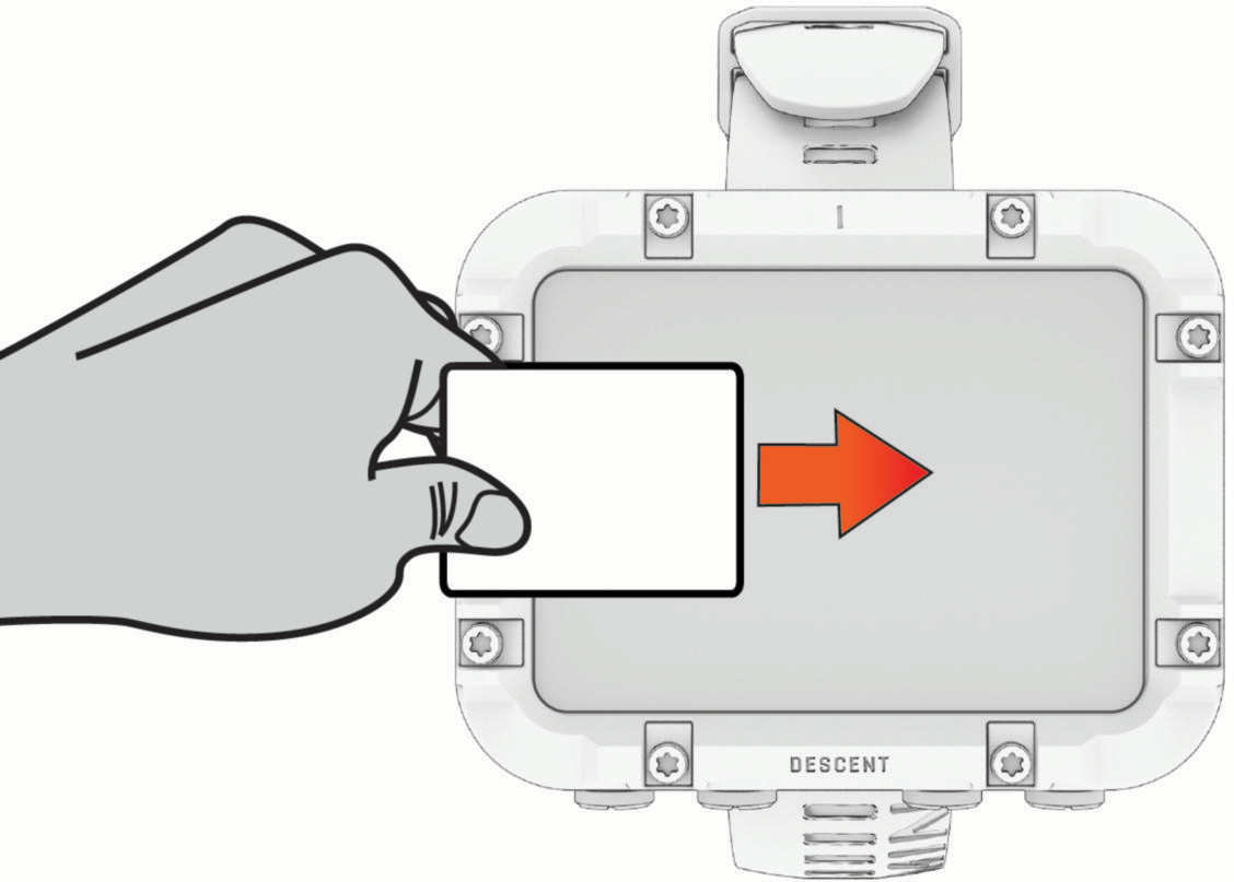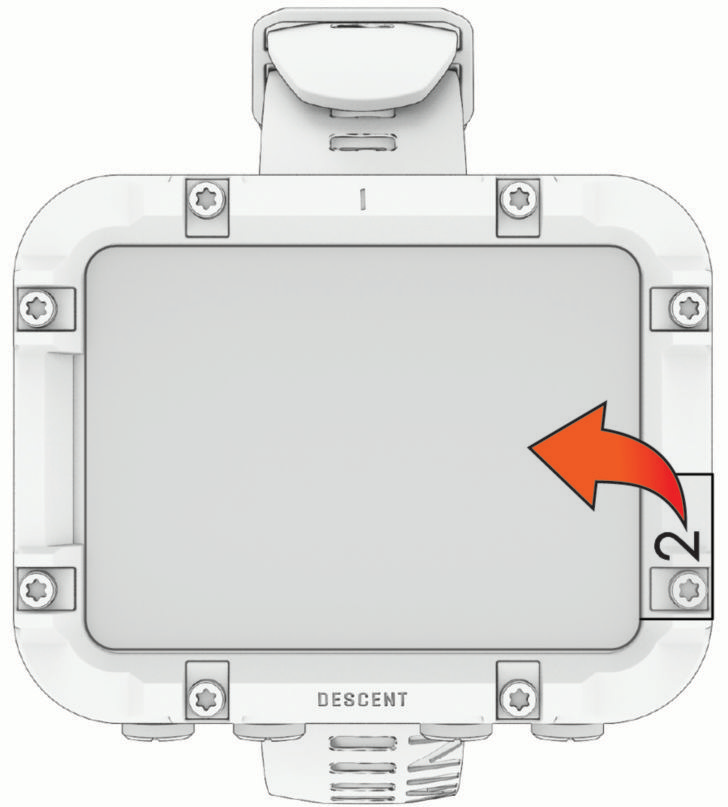 - 必要に応じて、ほこり除去シールを使ってダイブコンピューターの画面に付着したほこりやごみを取り除きます。