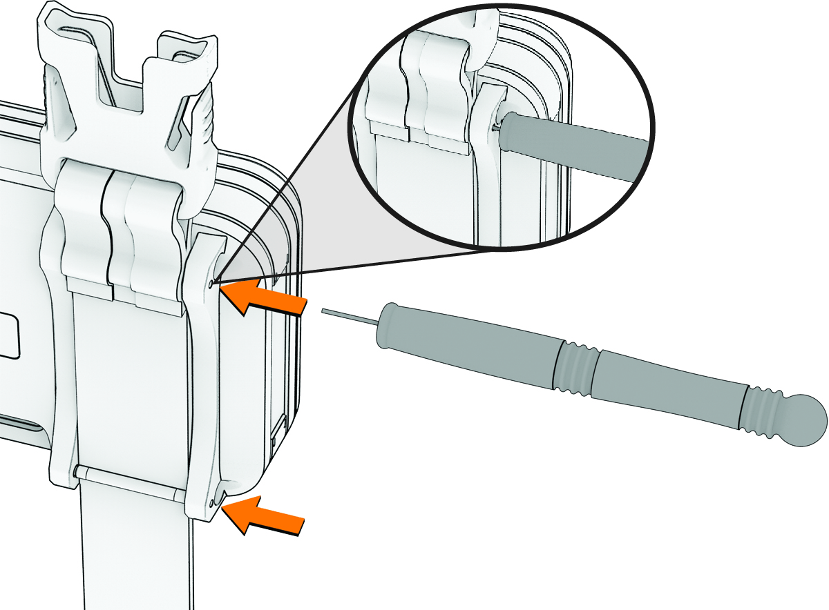 - Gunakan alat pelepas pin yang disertakan untuk mendorong masuk pin ke dalam salah satu tali, dan lepas pin.