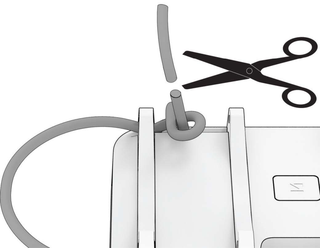 請勿在彈性繩佩戴在手臂上時切割,否則可能導致財產損失或嚴重的人身傷害。