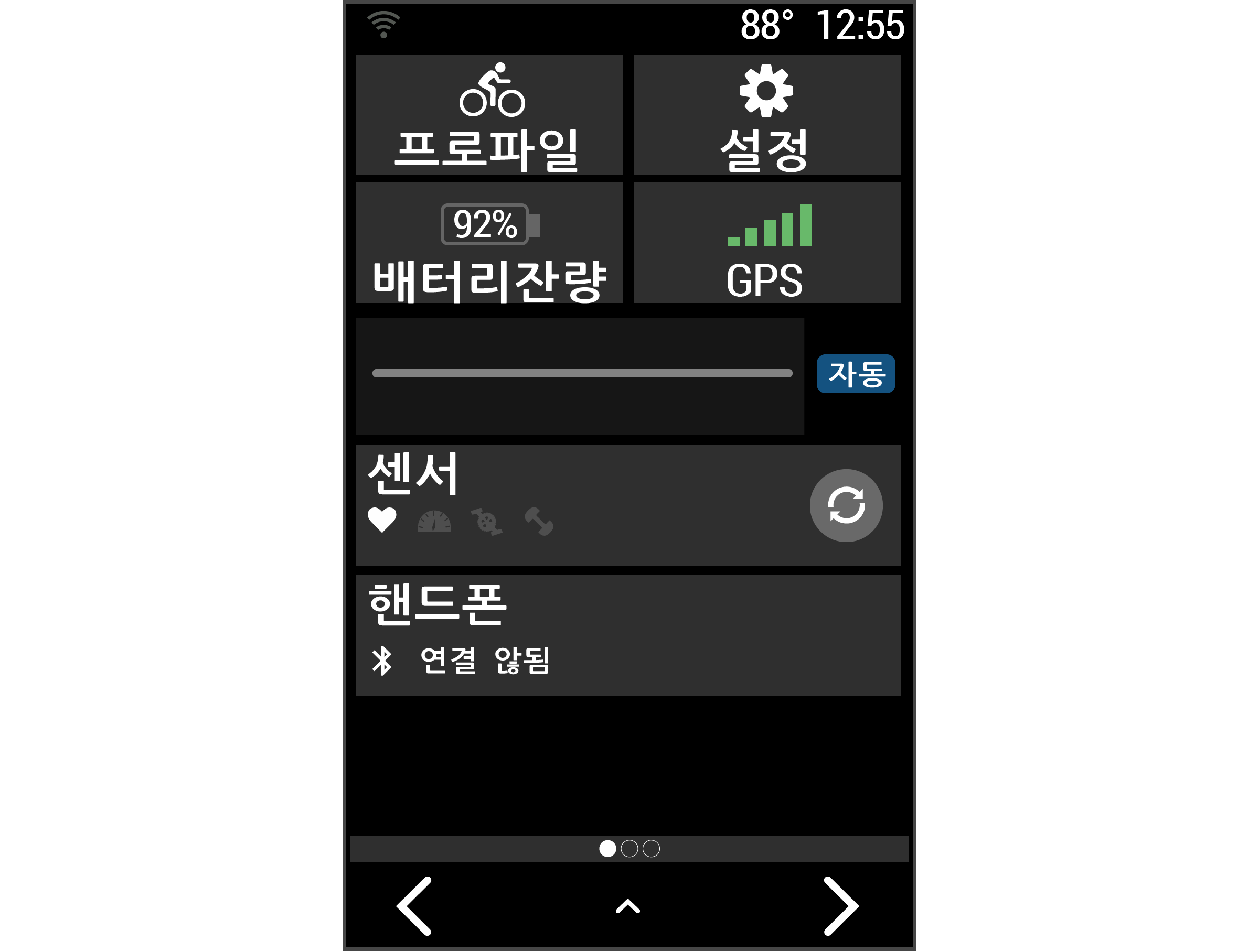 설정 위젯이 나타납니다. 점멸하는 아이콘은 장치가 신호를 찾고 있음을 의미합니다. 점멸하지 않는 아이콘은 신호를 찾았거나 센서가 연결되었음을 의미합니다.