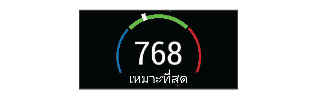 ค่าการประเมินปริมาณการฝึกซ้อมของคุณปรากฏเป็นตัวเลขและตำแหน่งบนมาตรวัดสี