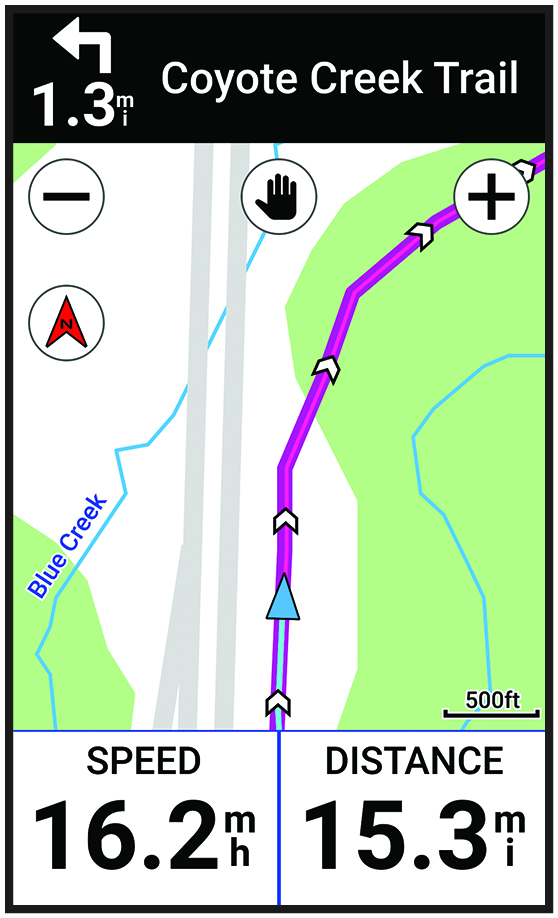 - Select Search to navigate to a point of interest, city, address, intersection, or known coordinates.