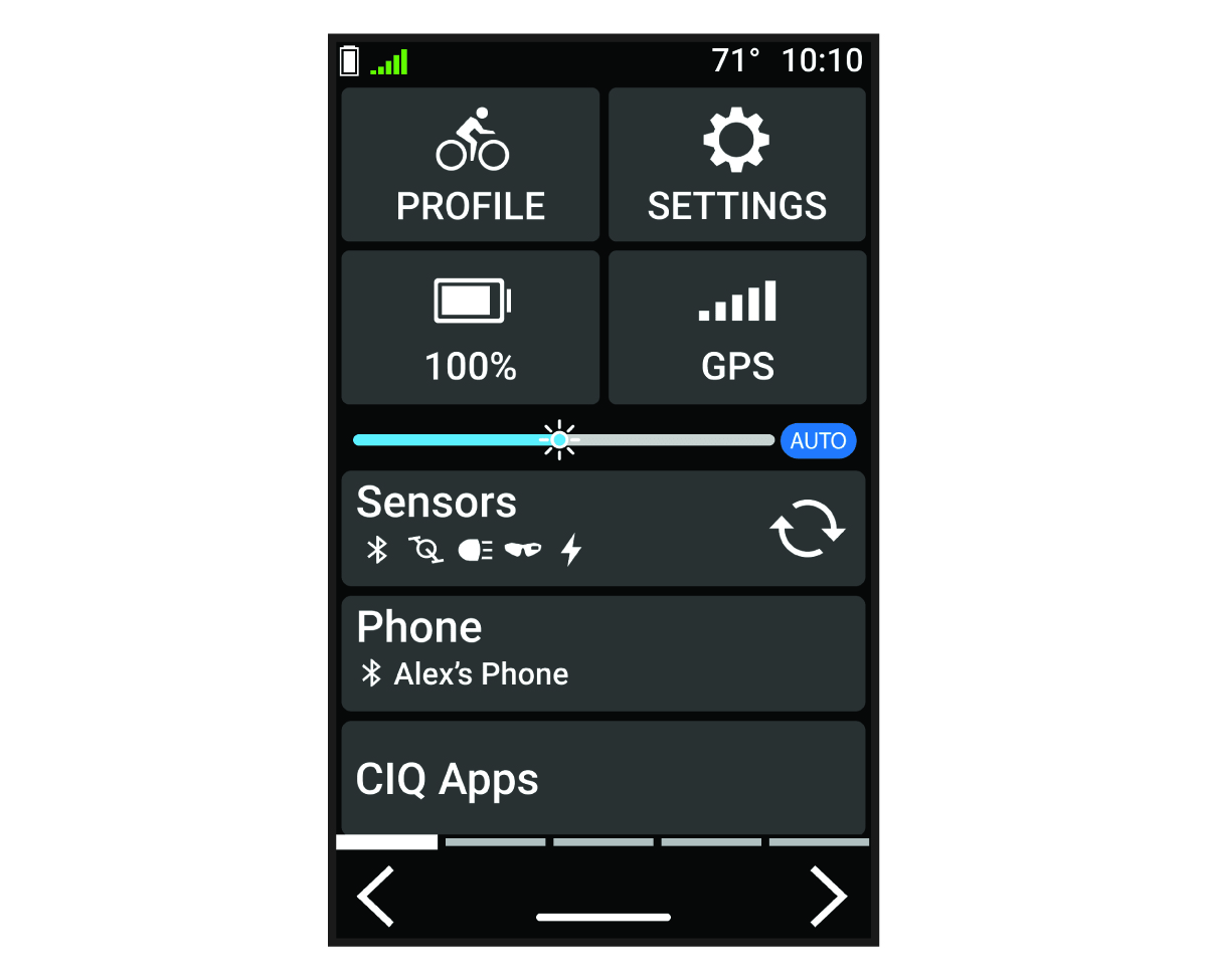 The settings widget appears. A flashing icon means the device is searching for a signal. A solid icon means the signal was found or the sensor is connected. You can select any icon to change the settings.