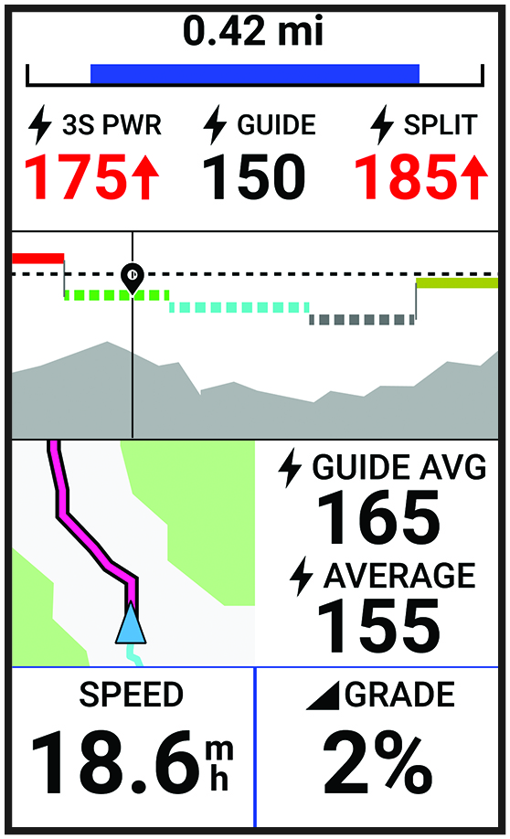 Power guides are always associated with a course and cannot be used with workouts or segments. You can view and edit your strategy in Garmin Connect and sync it with compatible Garmin® devices. This feature requires a power meter, which must be paired with your device (Pairing Your Wireless Sensors). After the devices are paired, you can customize the optional data fields (Data Fields).
