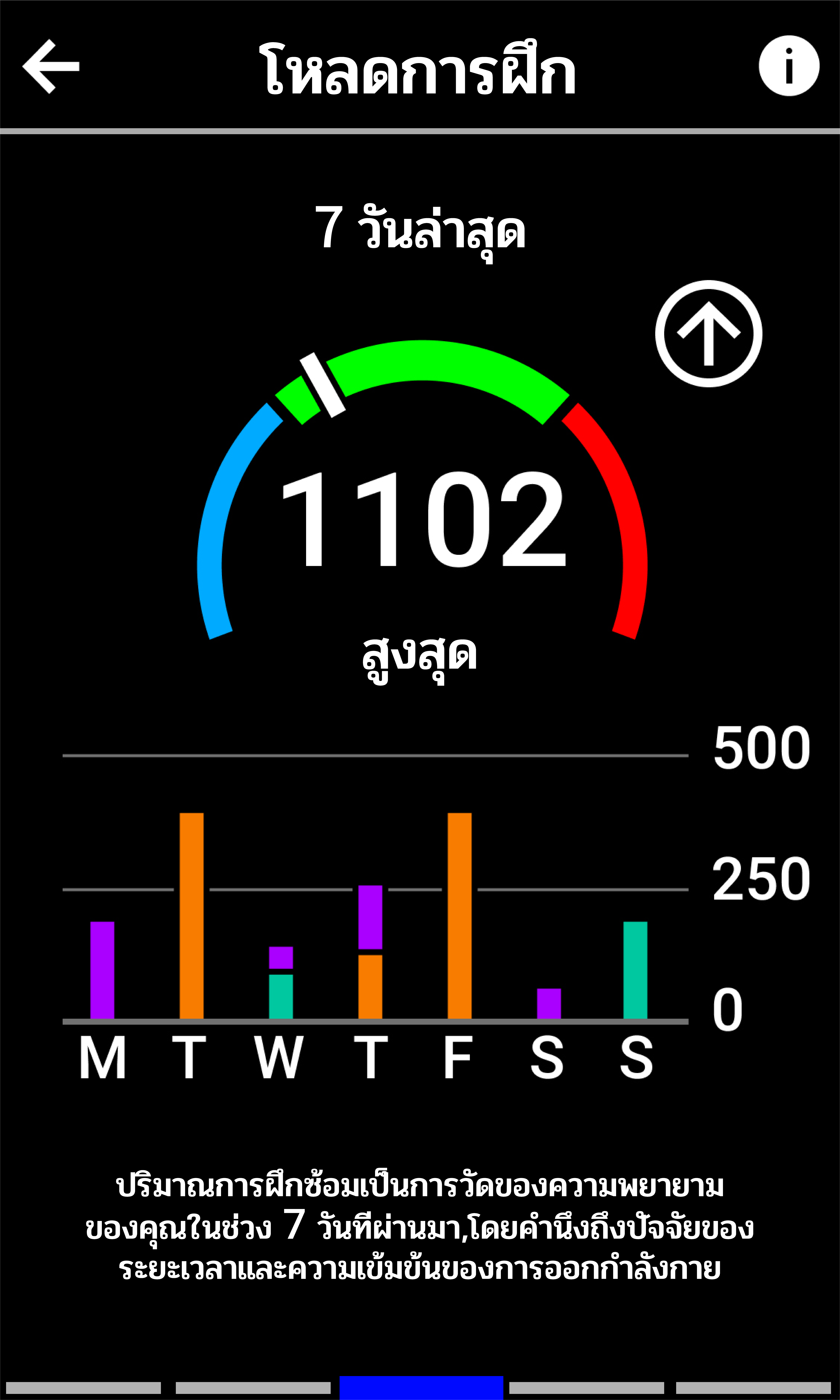 > สถิติของฉัน > สถานะการฝึก - ปัดเพื่อดูโหลดการฝึกของคุณ