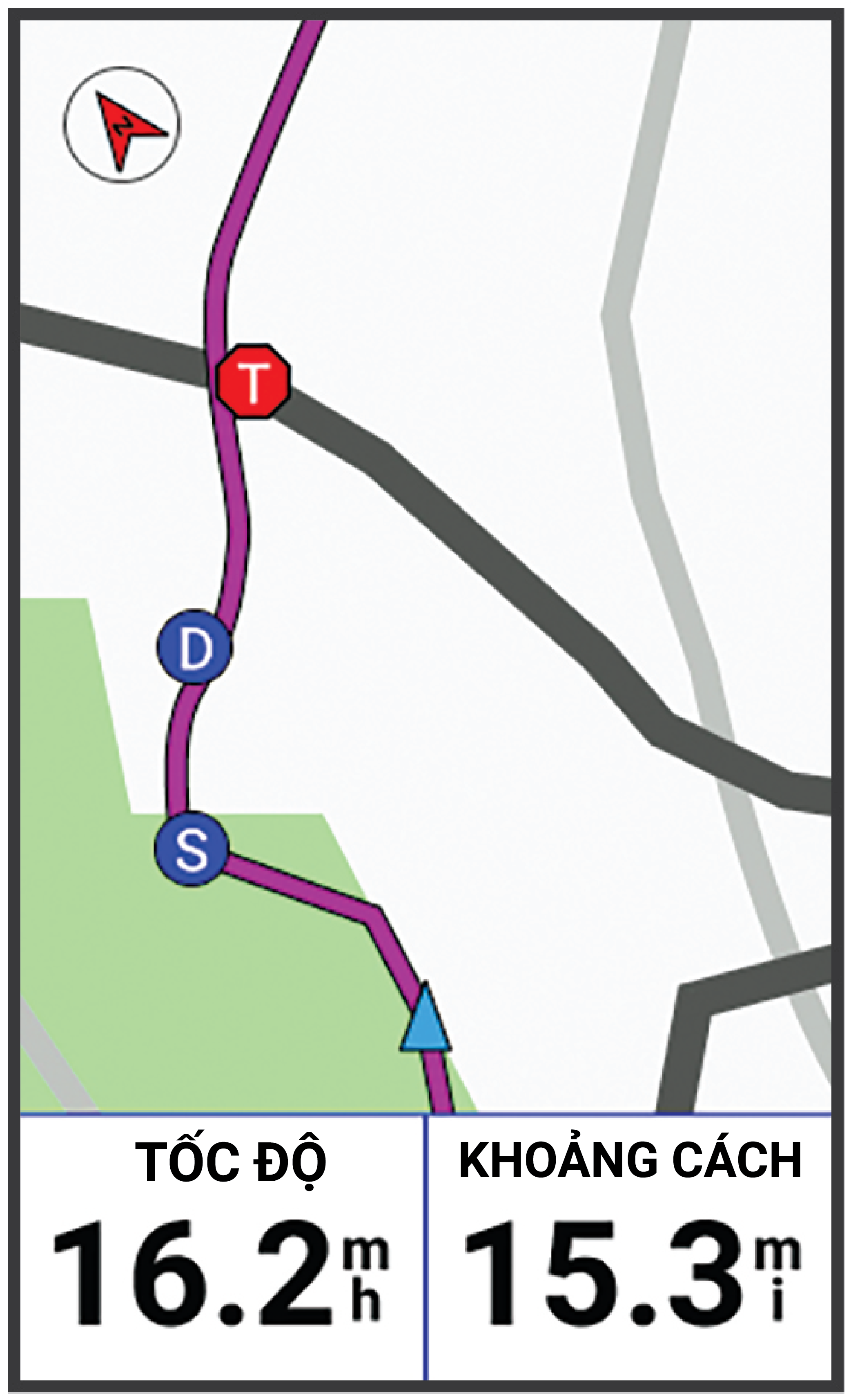 Tính năng GroupTrack cho phép bạn theo dõi các kết nối khác trong nhóm của bạn, sử dụng LiveTrack trực tiếp trên màn hình. Tất cả thành viên của nhóm phải kết nối với bạn trong tài khoản Garmin Connect của bạn.
